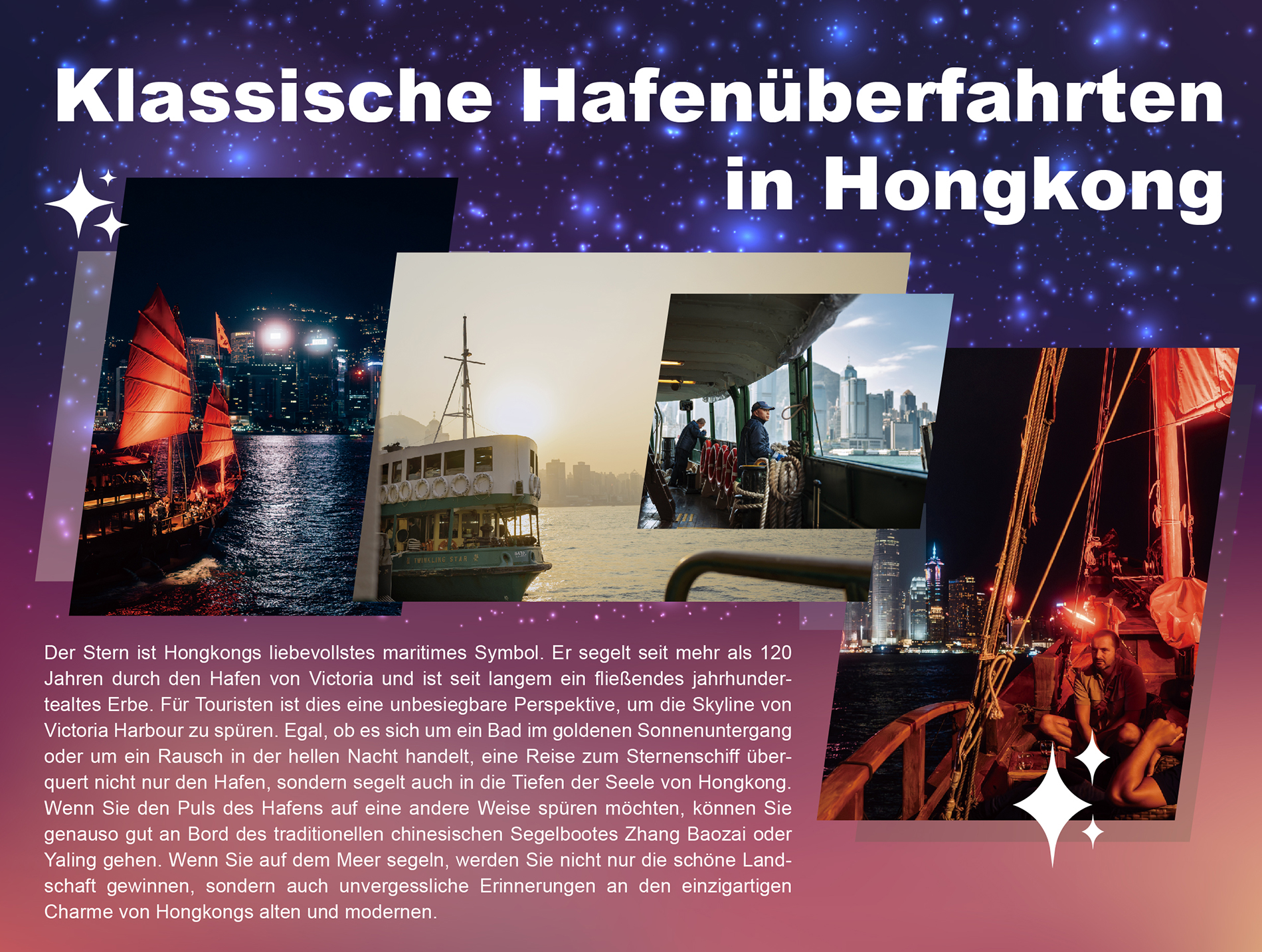 Die Informationen auf dieser Seite können ohne vorherige Ankündigung geändert werden. Bitte wenden Sie sich bei Fragen an die entsprechenden Produkt- oder Dienstleister. Das Hong Kong Tourism Board (HKTB) ist kein Lieferant der Produkte und Dienstleistungen der Reiseveranstalter und/oder Organisatoren und haftet nicht für jegliche damit verbundene Verbindlichkeiten. Im Falle von Streitigkeiten ist die Entscheidung der HKTB und der Reiseveranstalter und/oder Organisatoren endgültig.